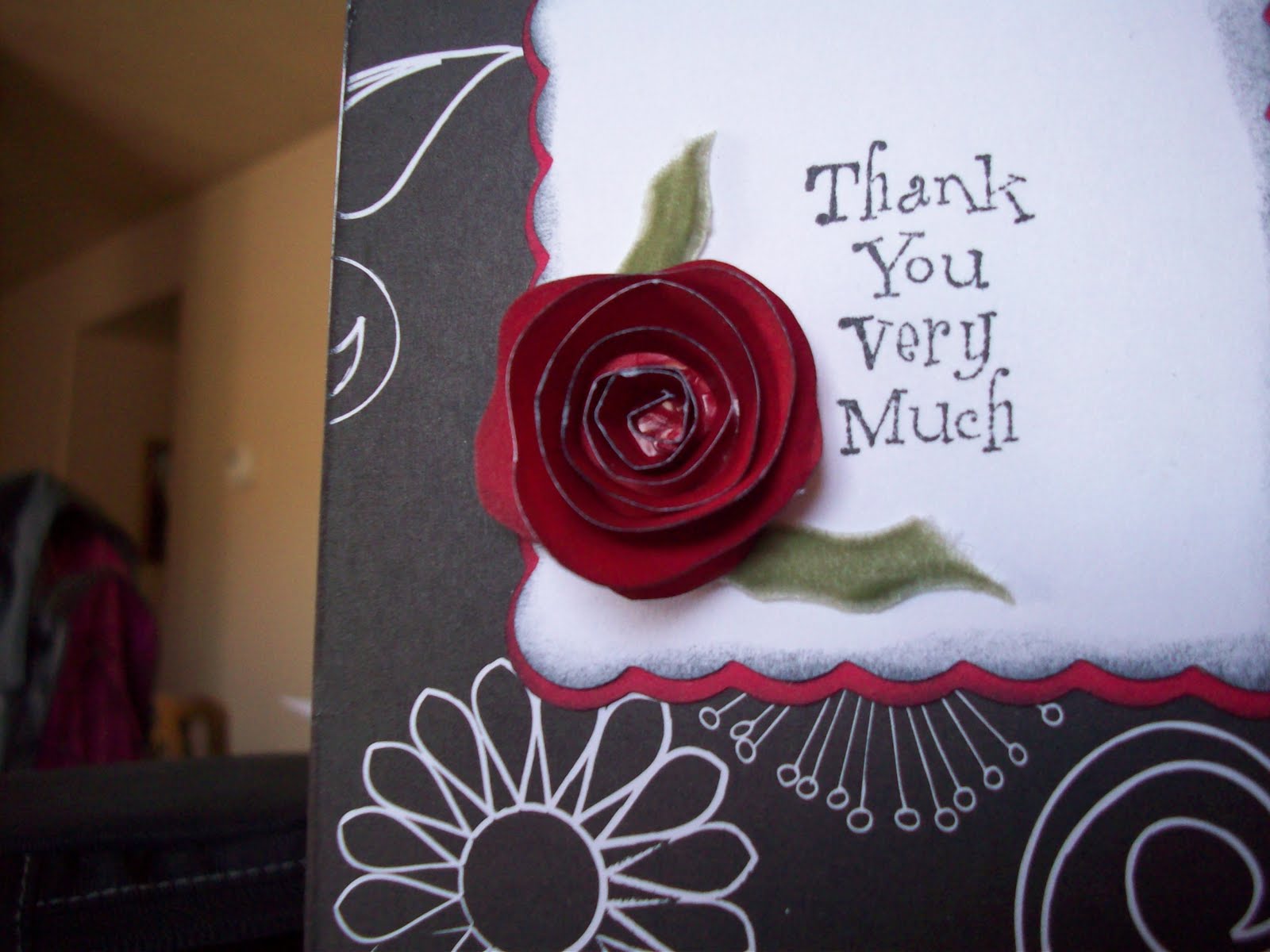 I used the rolled paper flower tutorial over on Little Birdie Secrets (I love all their video flower tutorials!) These cards are beautiful, but will probably need to be hand delivered to avoid extra postage. (that’s what she planned on doing anyway- which is why I made them this way!)