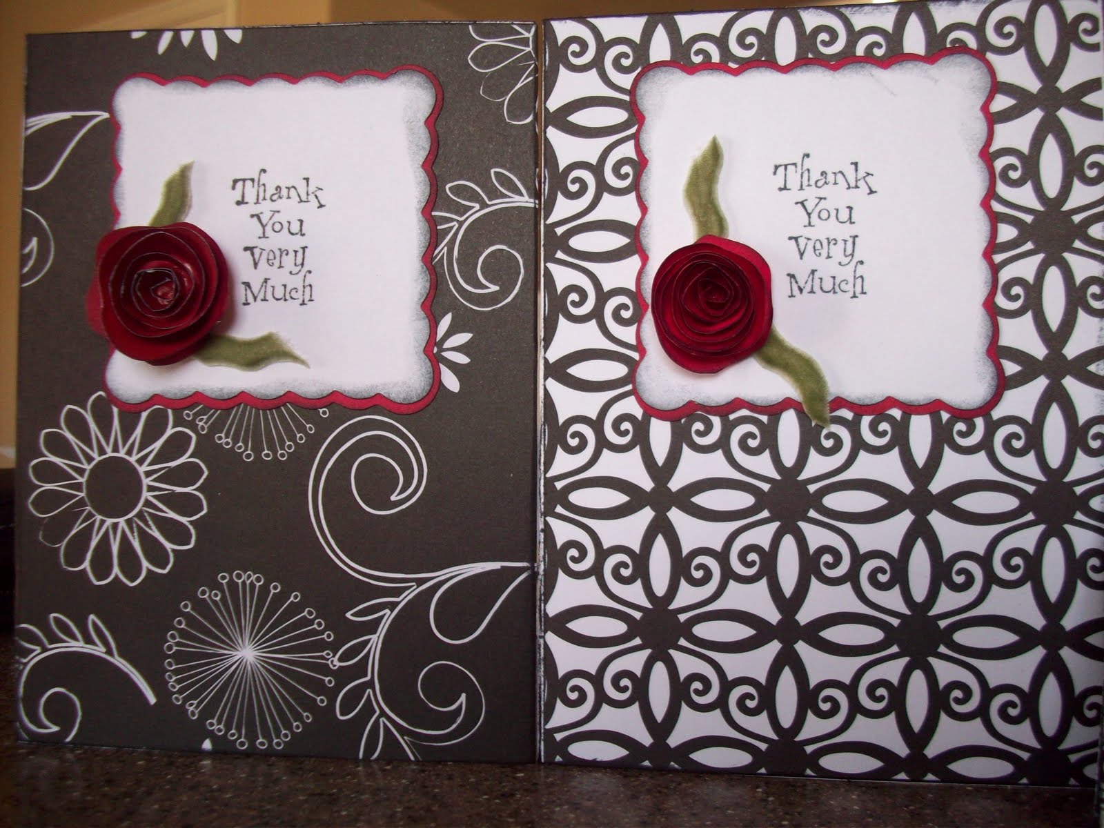 We just had a bridal shower for my cousin who is getting married next week. (Yay!) She asked me to make some thank you cards for her to give to the guests.