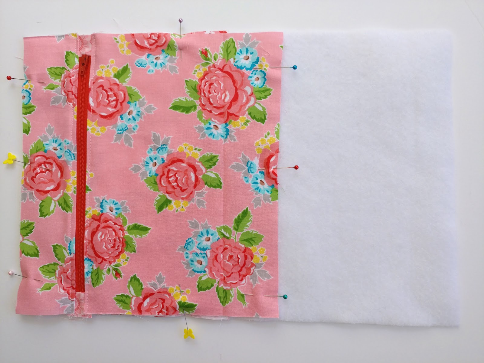 - Line up the back pocket piece with the left side of the batting piece