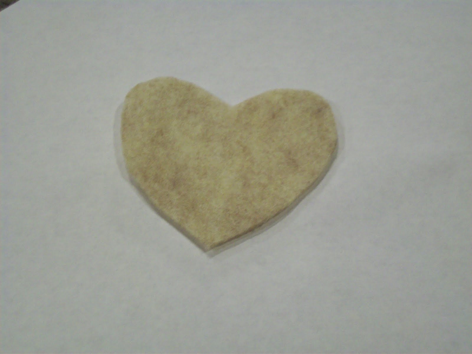 First you will need to cut out your heart shapes. I used a cookie cutter as a template. One trick for cutting out felt, is to put your pattern on a piece of regular copy paper and pin it to the felt, then cut it out. It keeps the edges neat and keeps you from having to draw on the felt.