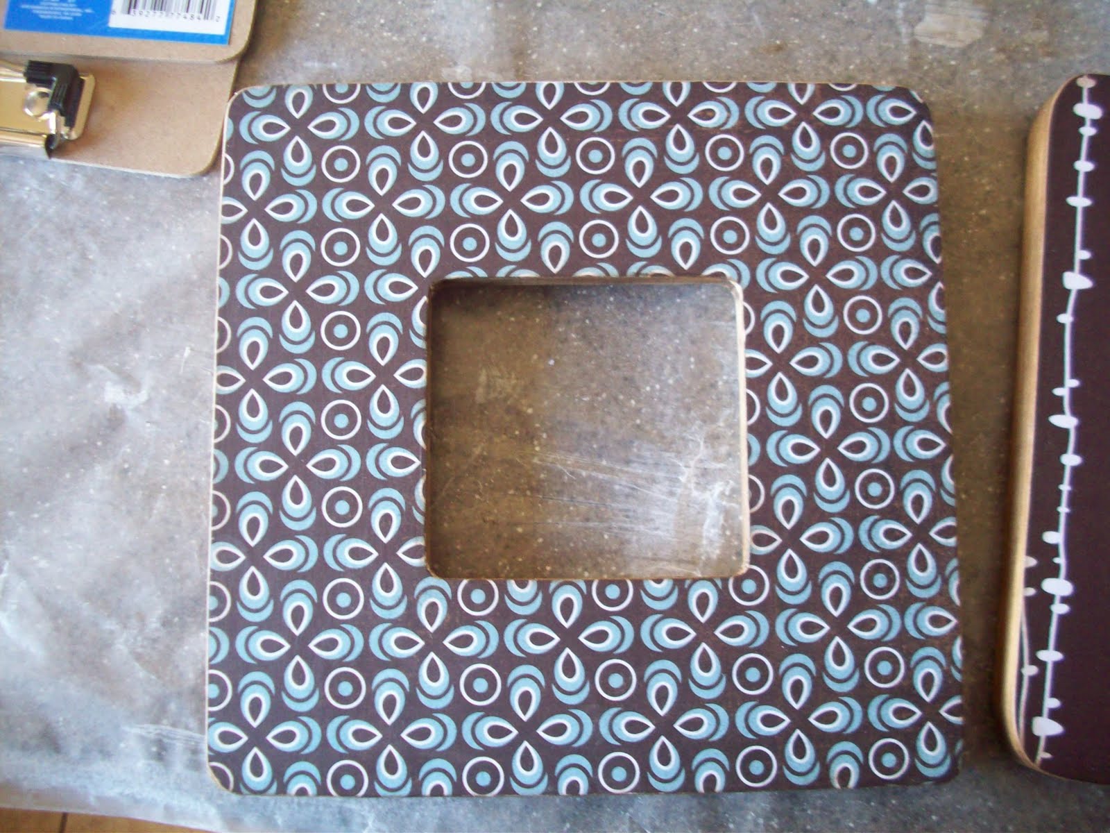 So this morning my daughter and I decided to do some crafts together. I had these dollar frames from Michaels sitting around and I had been hoarding this paper to make something for my bedroom, since I love Basic Grey and these are the perfect colors for my room.