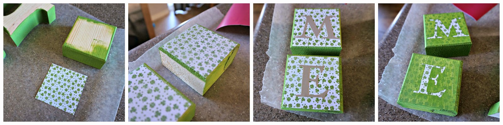– paint the block edges and cut your scrapbook paper to fit on the front