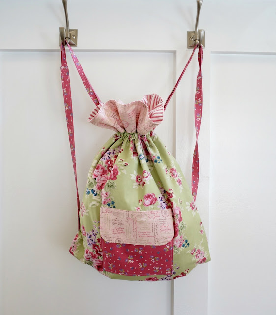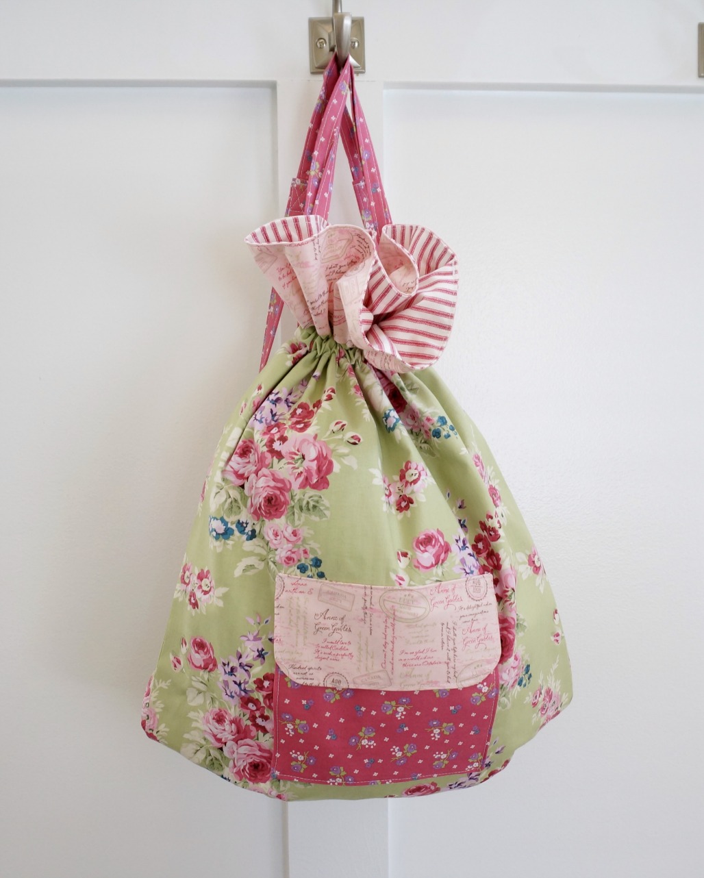 When I was asked to participate in the Anne of Green Gables blog hop, I was thrilled. I love Anne and her optimism and strength. This ruffle top drawstring bag is a simple project to sew and a great way to use these beautiful fabrics.