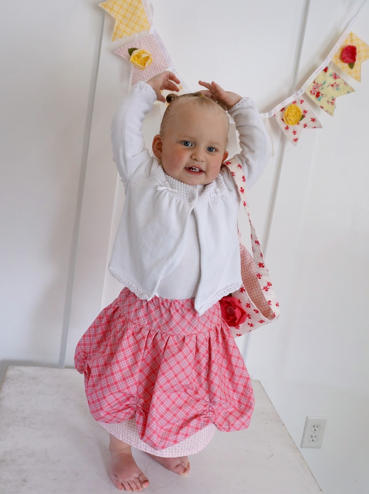 It was almost exactly 6 years ago that I first published this skirt tutorial. I love the full scallops and the bell-like look of the skirt. Please bear in mind this was one of my first tutorials and the pictures are tiny- if you have any questions, please don’t hesitate to ask me! We still have that first skirt I made and it has held up beautifully. The skirt will fit from 2-4T just by adjusting the elastic in the waist. I couldn’t resist making this for my sweet little almost 2 year old. It will be her Easter dress for church. This plaid is just so great!