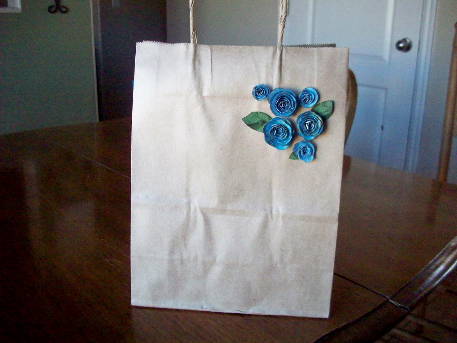 But sometimes, you don’t need layers upon layers. Sometimes a brown paper bag and a few spiral rose paper flowers are all you need to make the point. This is the giftwrap I used for my sister’s new baby gift. Blue flowers for a little boy, sweet and pretty for one amazing mama!